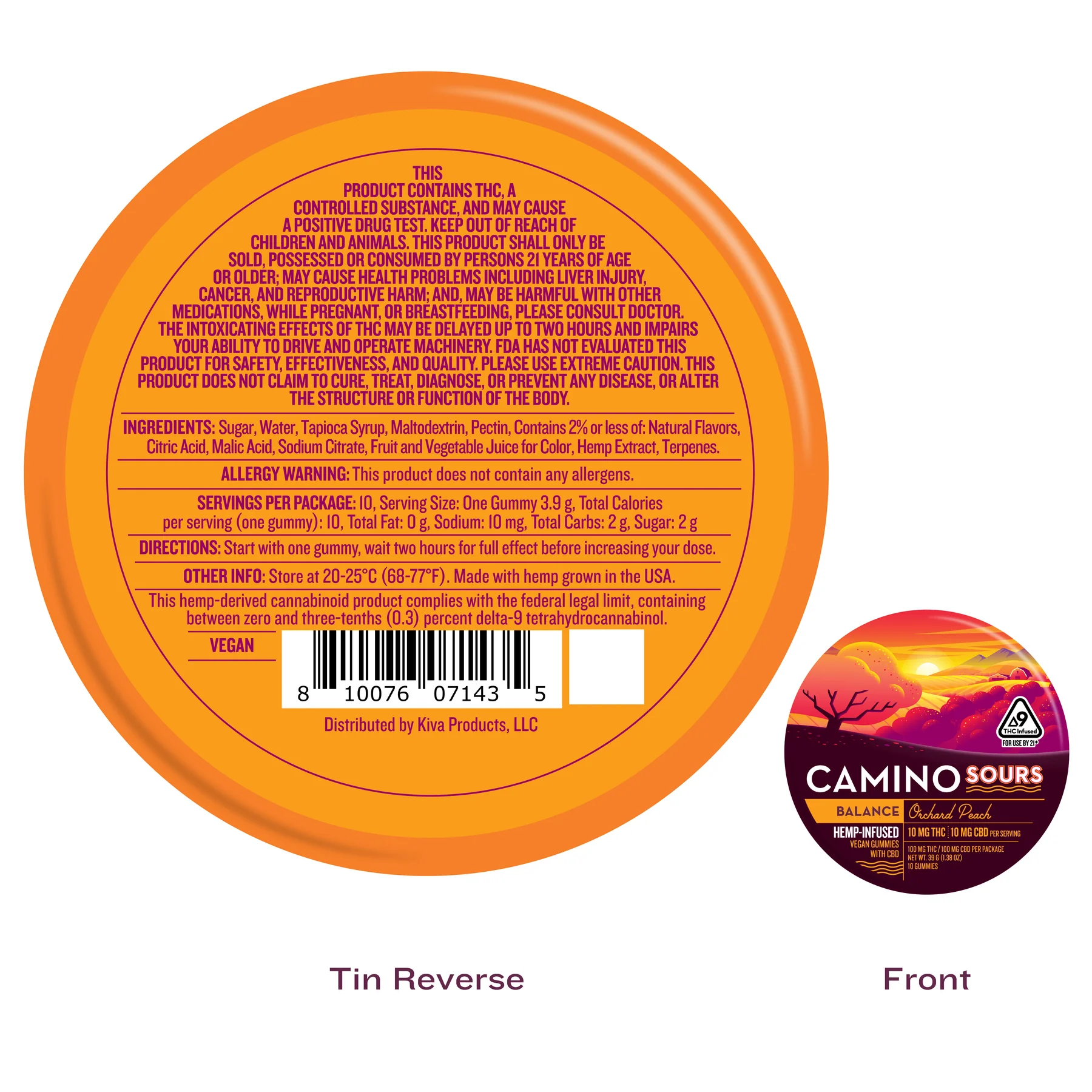 Camino Sours Orchard Peach ‘Balance’10mg THC 10mg Gummies